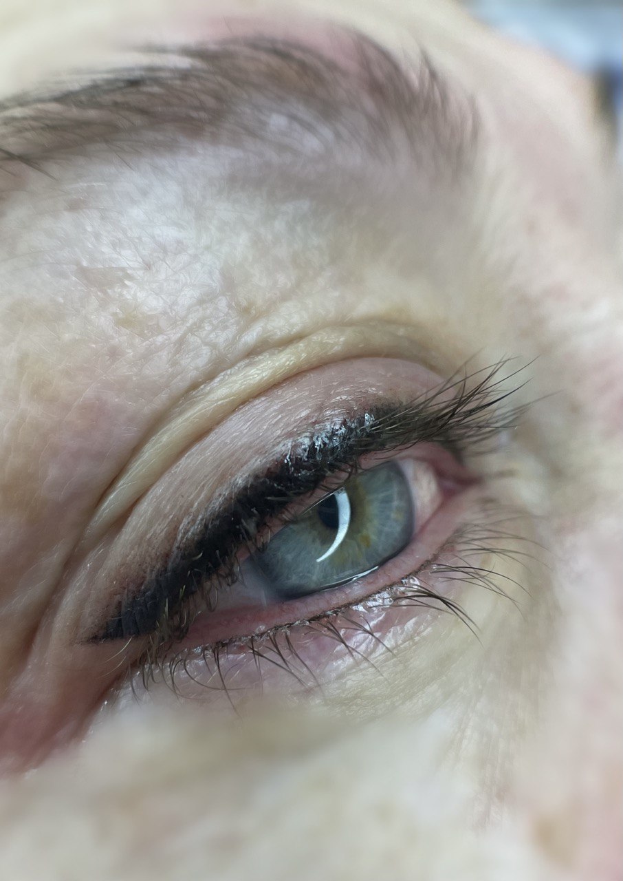 Процедура межресничного татуажа подразумевает введение стойкого пигмента в межресничное пространство верхнего или нижнего века. Результат отличается отсутствием четких контуров. Татуаж выглядит единым целым с линией роста ресниц, создает эффект темных и густых волосков. Мастер подбирает тональность красителя, технику перманента. Выполняет межресничный татуаж с растушевкой, тенью или стрелками.